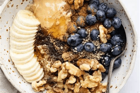 Artful Toppings: Enhance the breakfast bowl by adding finely chopped apple pieces, nutty pumpkin seeds, and crunchy almonds as toppings.