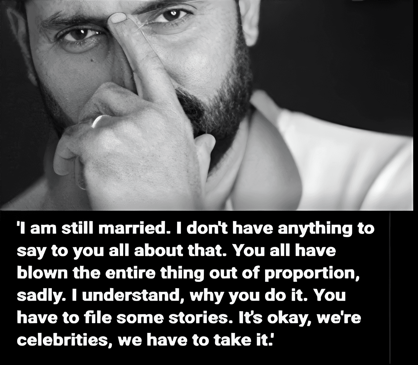 In an interview with Bollywood UK Media, Abhishek addressed the rumors by displaying his wedding ring and stating, Still Married.