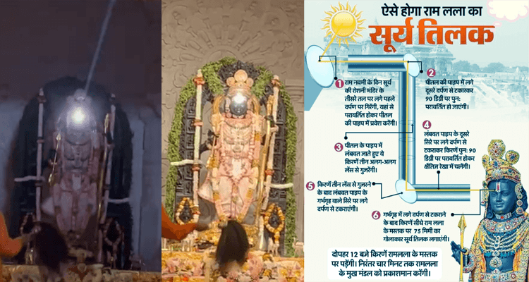 In a special annual event called Surya Tilak something magical happens at the revered Ram Janmabhoomi in Ayodhya, India. It’s a symbolic ritual that aims to create a divine atmosphere within the temple grounds. This beautiful celebration takes place on Lord Ram’s birthday, the ninth day of the Chaitra month.
