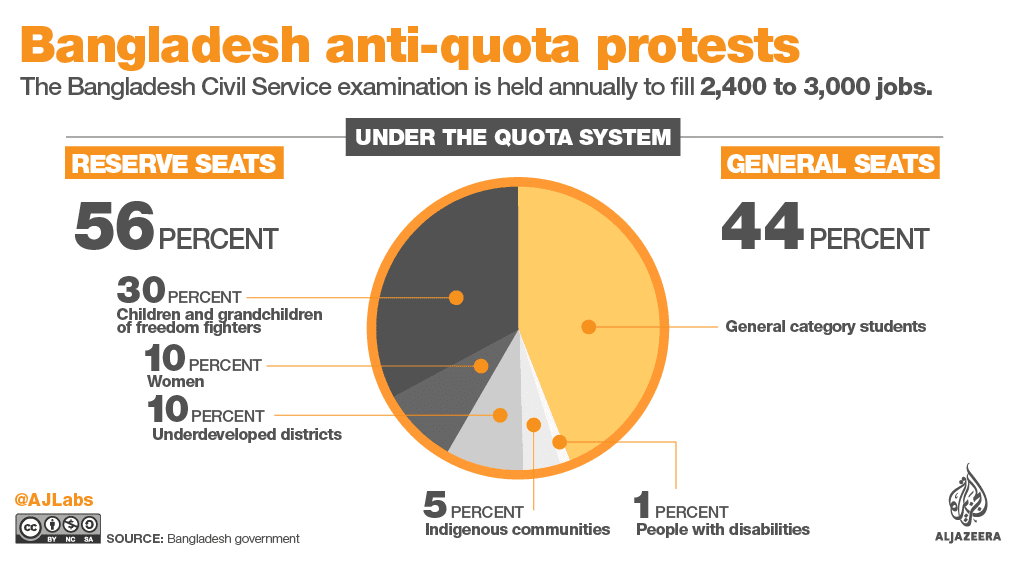 In 2018, The former PM Sheikh Hasinas government abolished the quota system, which had reserved 56% of government positions under different quotas.