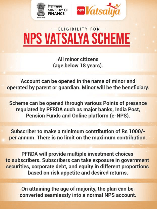 Both non-resident Indians (NRIs) and Overseas Citizenship of India (OCI) cardholders can participate in this scheme. Currently, the NRI and OCI subscribers have a provision to make contributions to the NPS Vatsalya accounts through NRE or NRO accounts.
