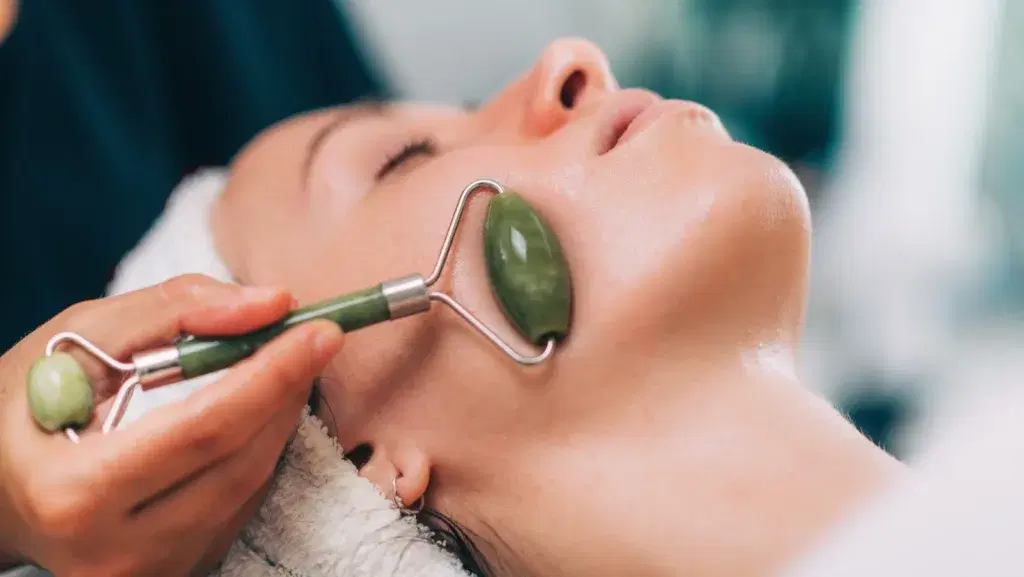 Jade rollers work in a similar fashion as gua sha instruments.it consists of a handle and two rolling stones, one for face and other one for smaller areas (under-eyes). The rolling stones help in improvement of circulation.