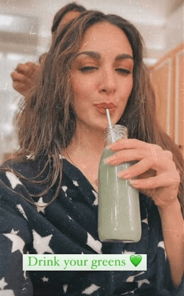 Kiara enjoys a cool glass of lemon water or coconut water to start her day. This easy-to-do morning routine gives her body an extra dose of vitamin C and rehydrates it.